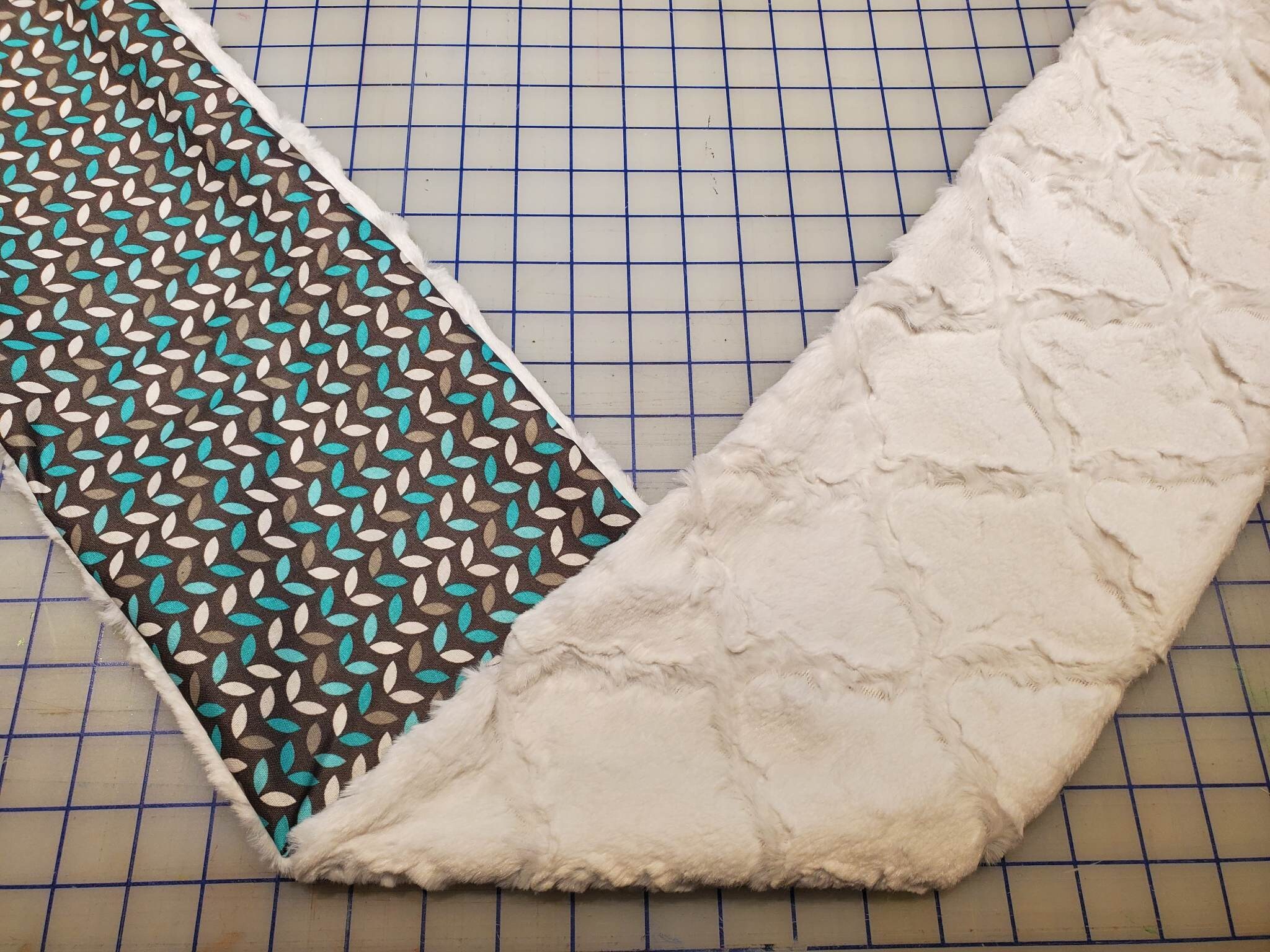 One side of your new wrap will be a super soft minky and the opposite side will be a coordinating cotton woven or flannel.