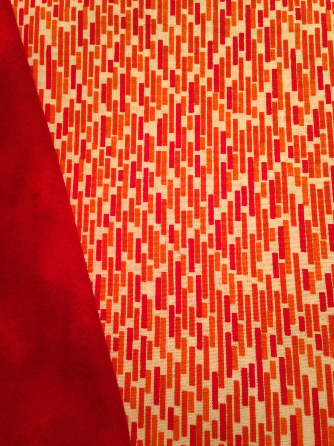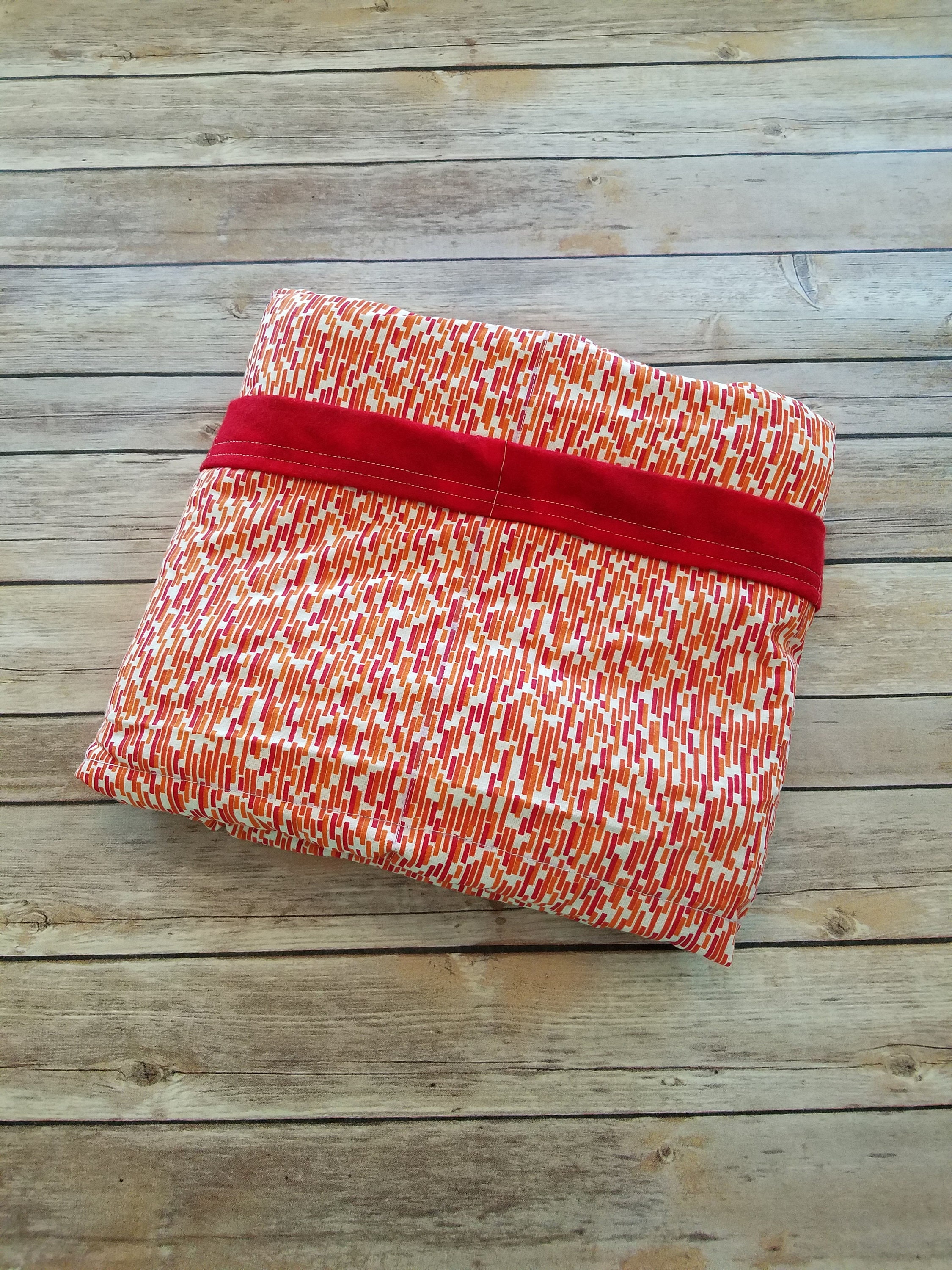 Made from red tonal flame dot themed woven cotton fabric and backed with a coordinating red snuggle flannel fabric for added softness and texture.