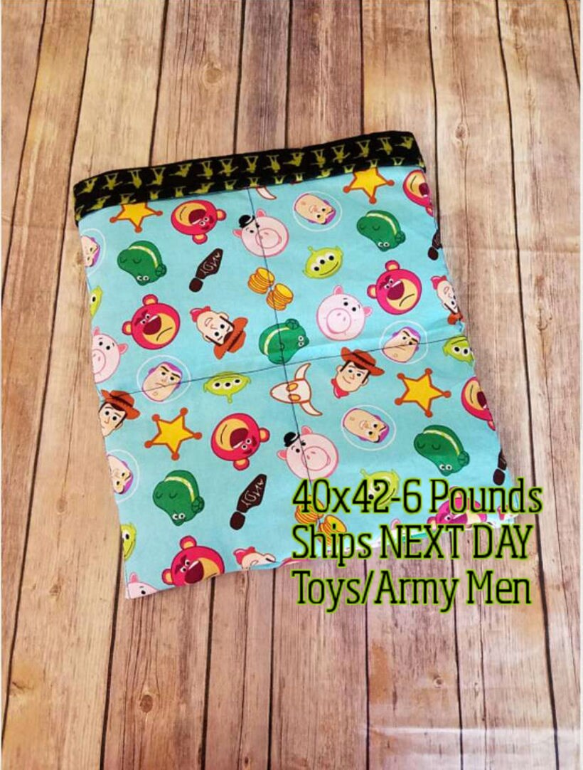 The blanket arrived quickly and is perfect! Love the toy story patterns and it seems to be helping our daughter with her sleep troubles so far. :)
