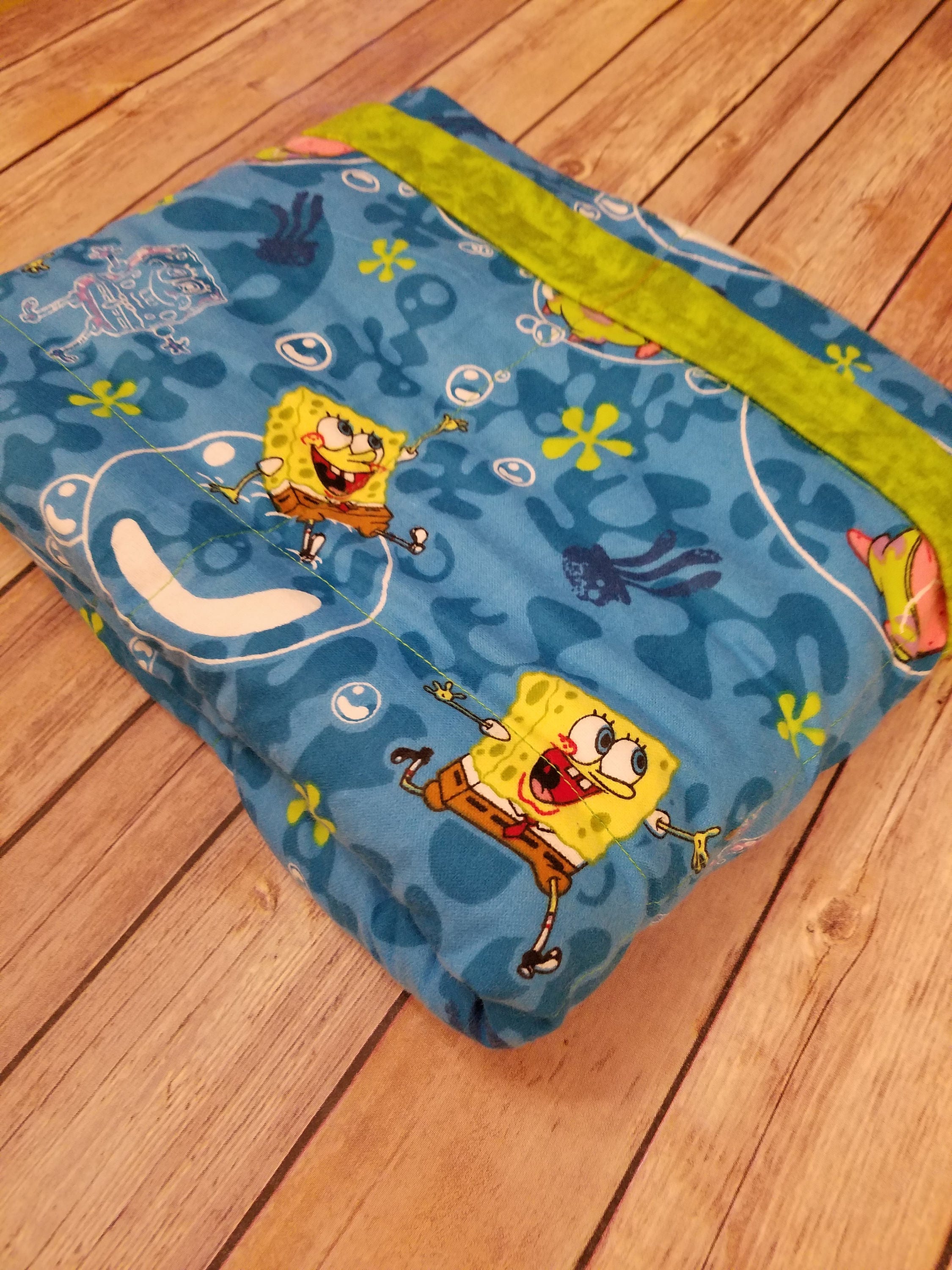 Made from licensed cartoon themed flannel fabric and backed with a coordinating lime green tie dye snuggle flannel fabric for added softness and texture.