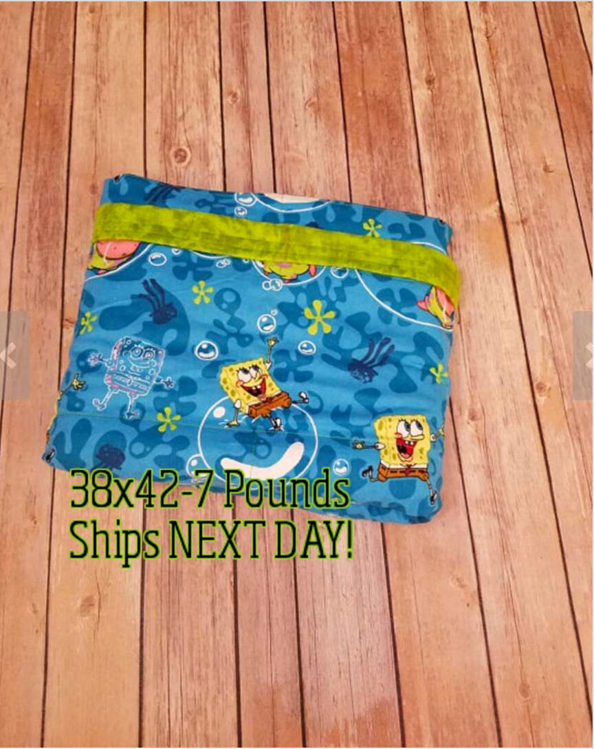This is a sensory weighted blanket. The blanket comes in 7 pounds and measures 38x42 inches.