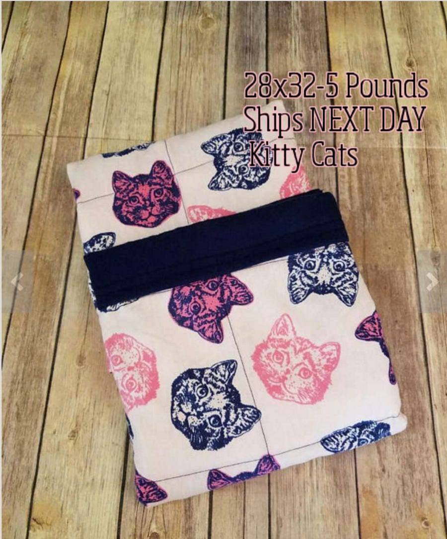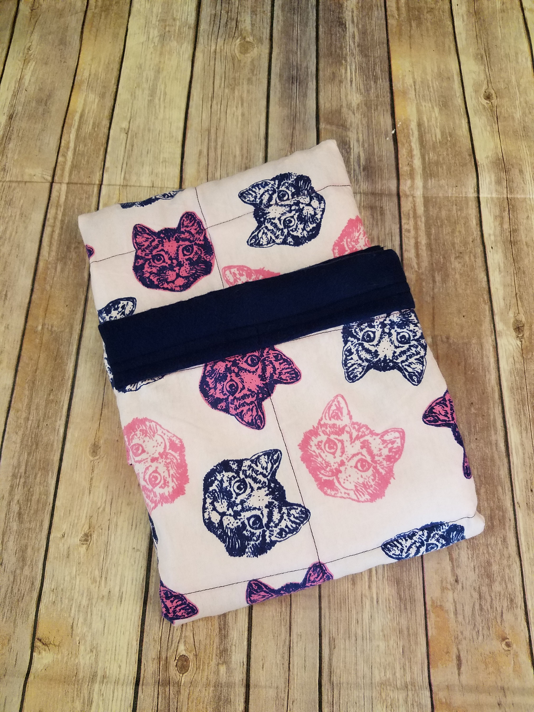 Made from Cat themed snuggle flannel fabric and backed with a navy ultra cuddle flannel fabric for added softness and texture.