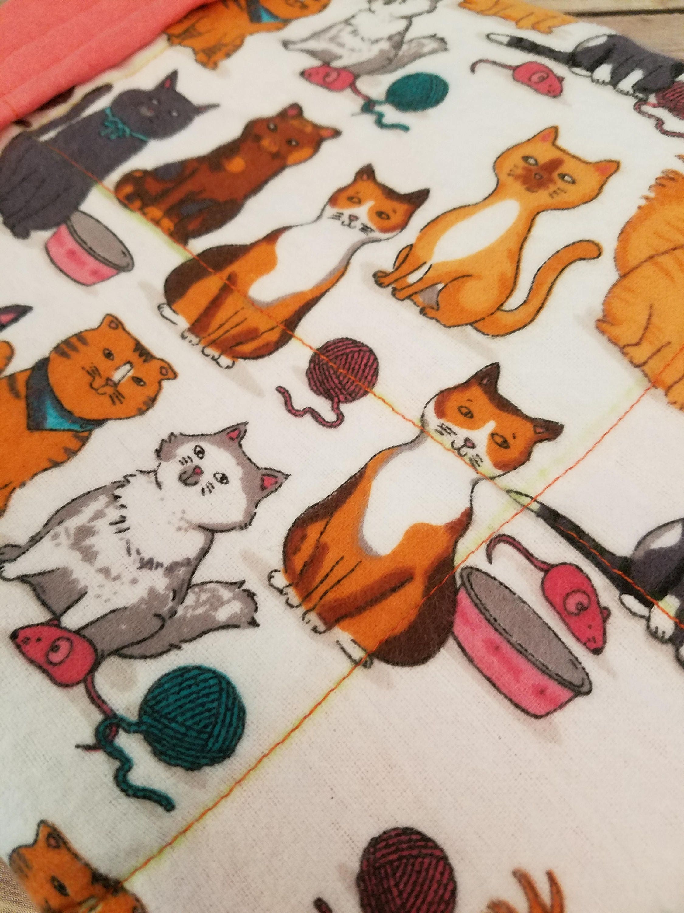 Made from Cat themed snuggle flannel fabric and backed with a pink ultra cuddle flannel fabric for added softness and texture.